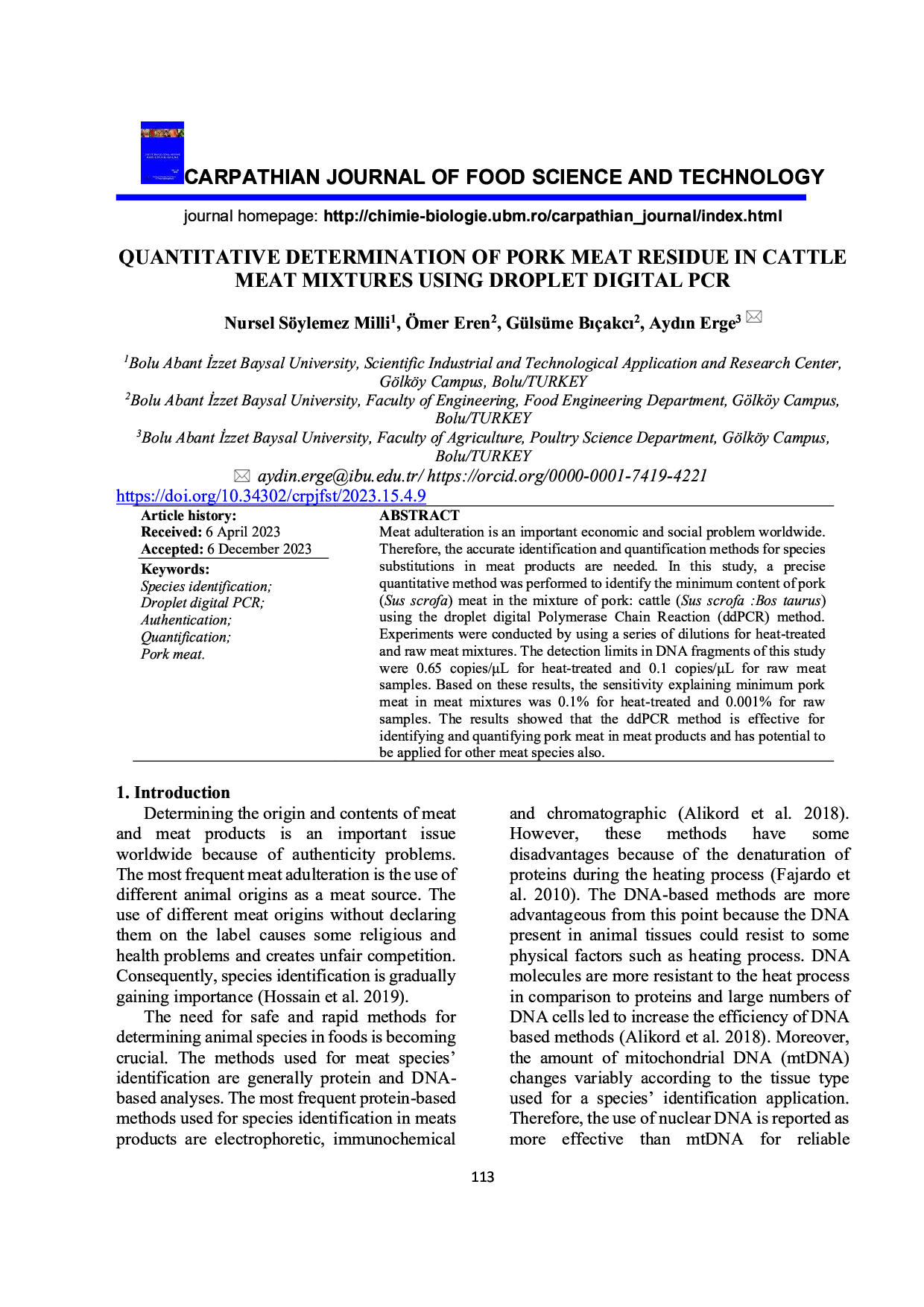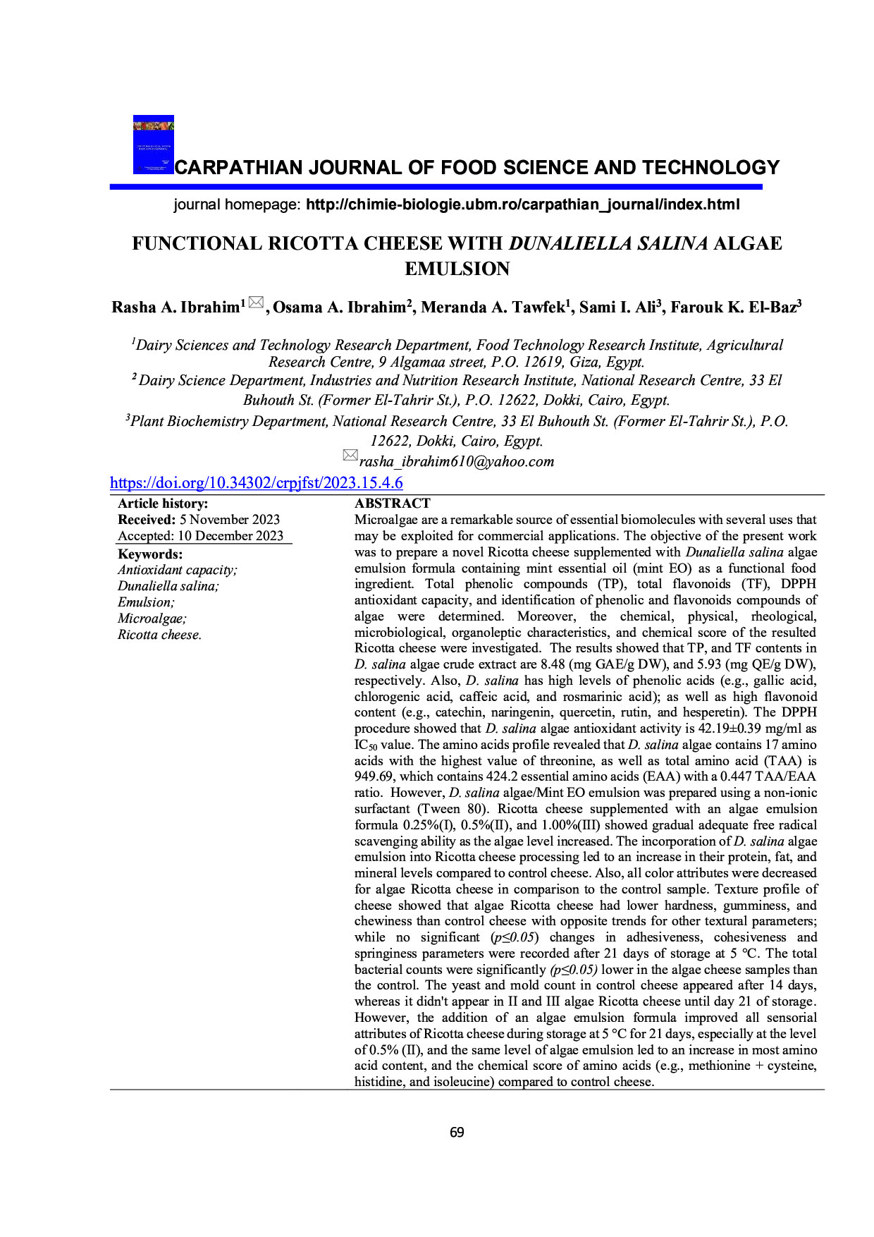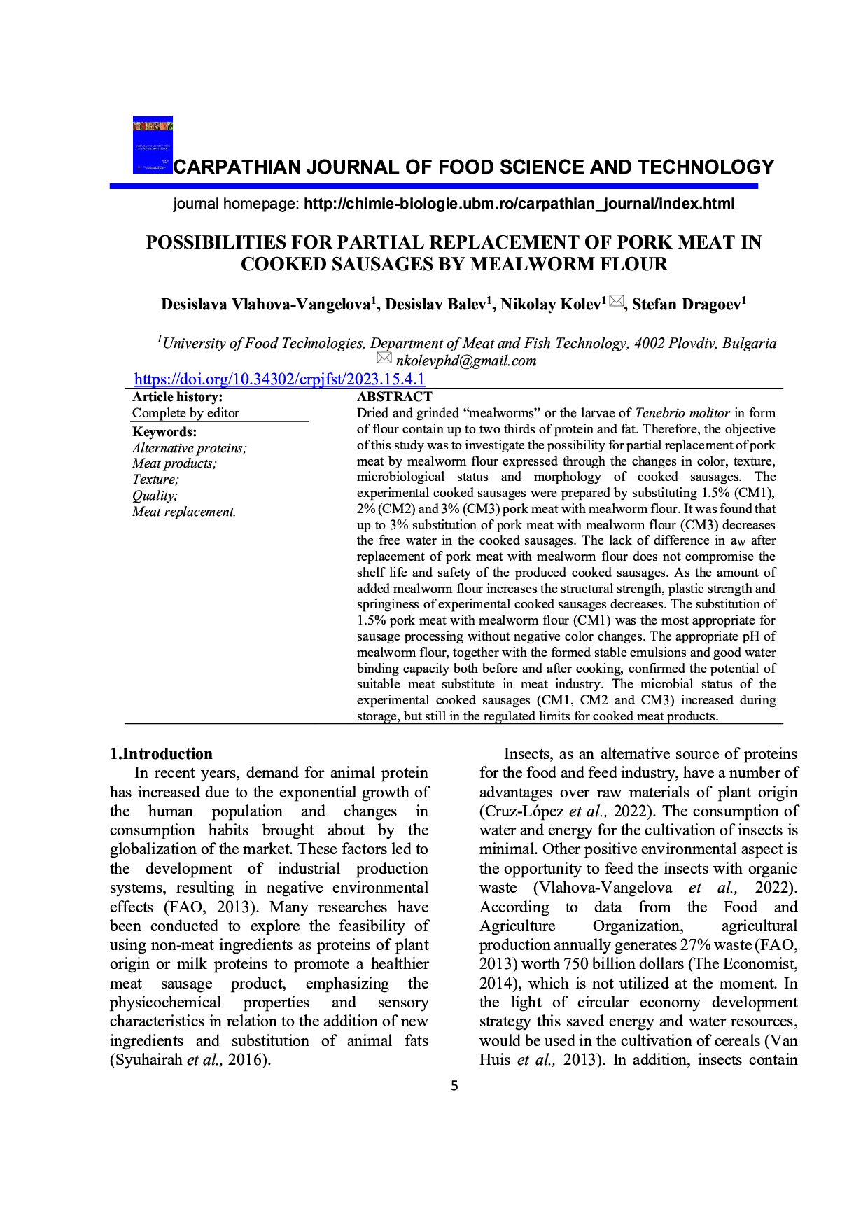 Vol. 15 No. 4 (2023): Carpathian Journal of Food Science and Technology
