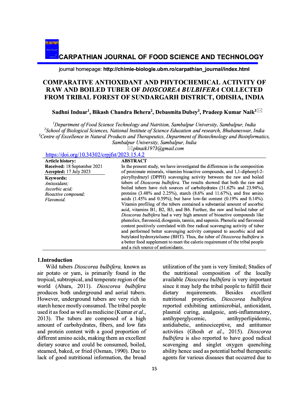 Comparative antioxidant and phytochemical activity of raw and boiled tuber of