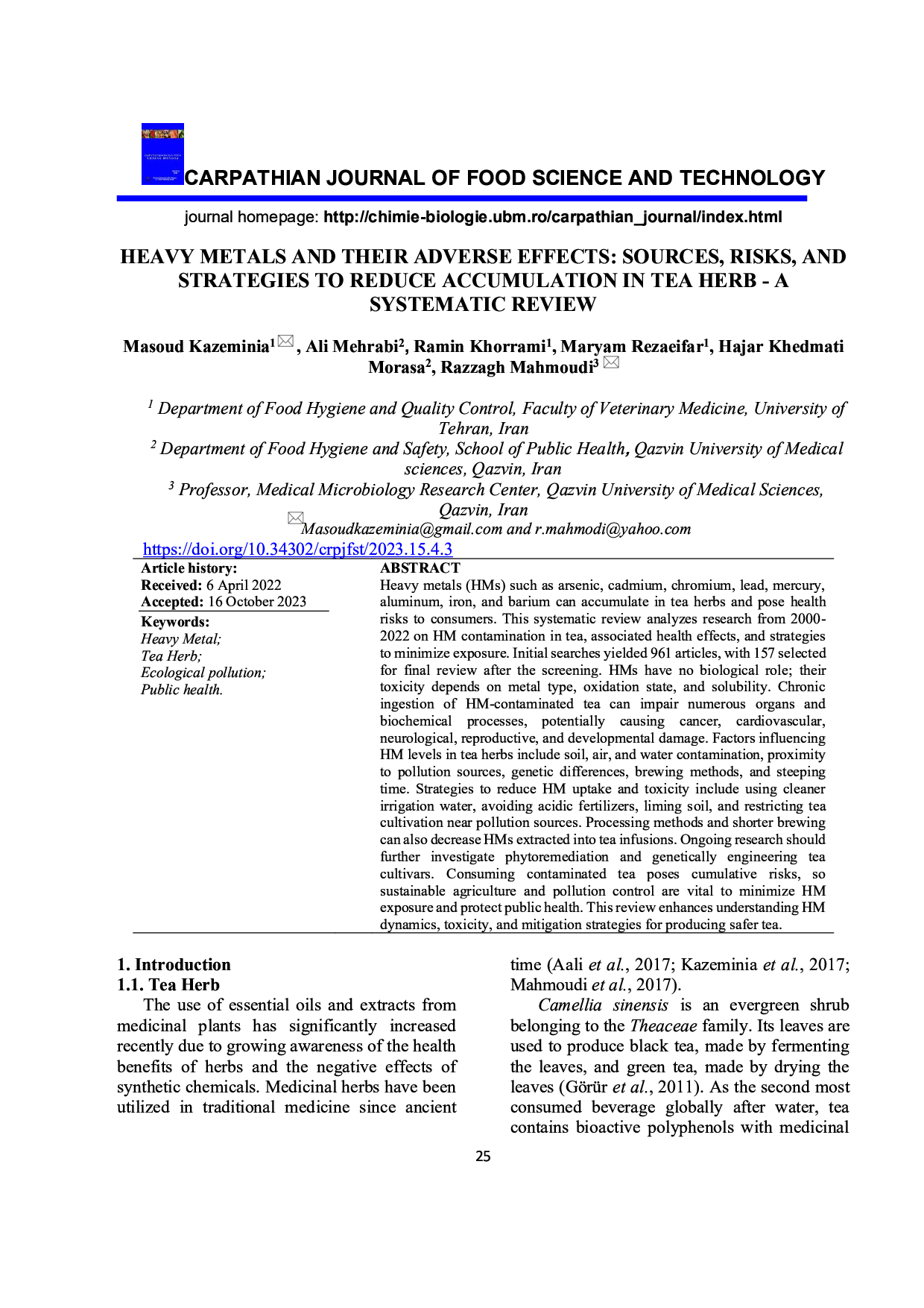 Heavy metals and their adverse effects: sources, risks, and strategies to reduce accumulation in Tea Herb – a systematic review