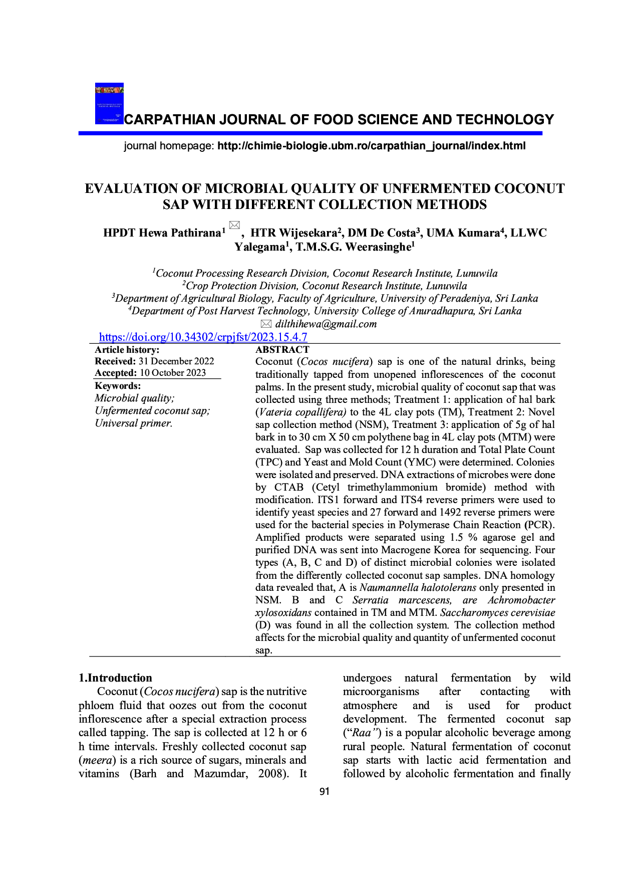 Evaluation of microbial quality of unfermented coconut sap with different collection methods