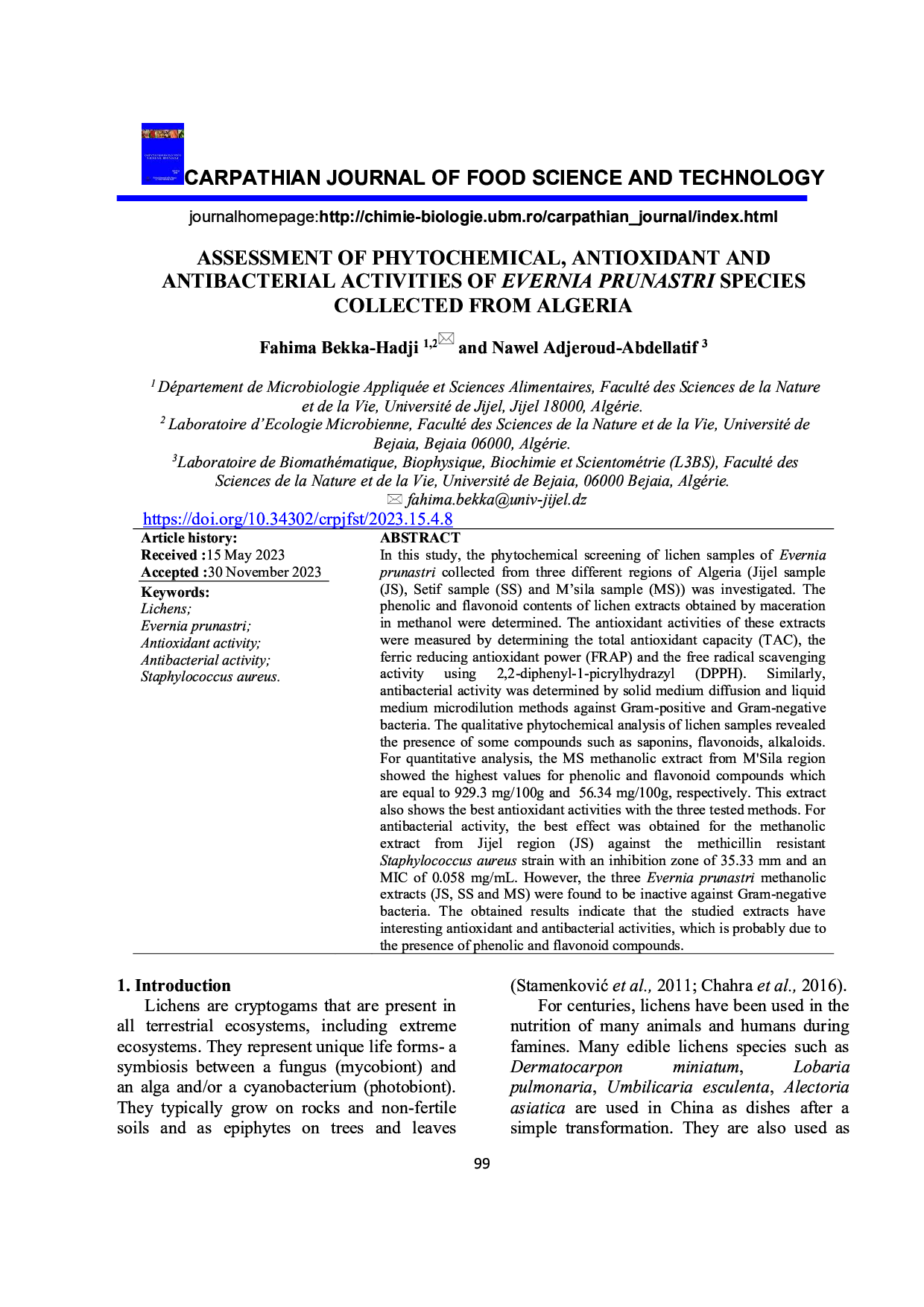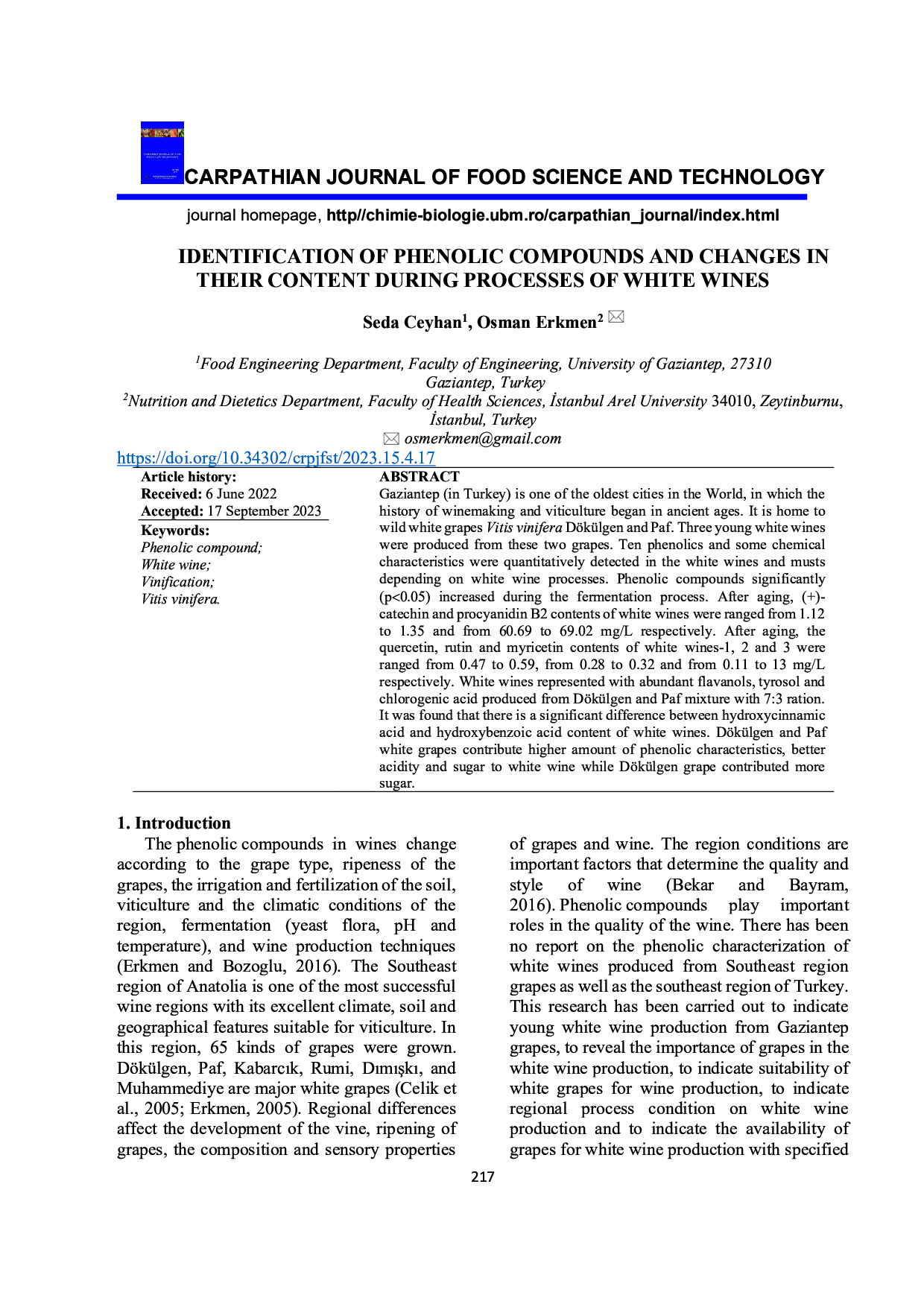 Carpathian Journal of Food Science and Technology