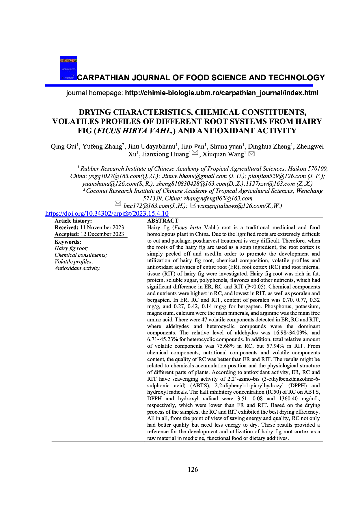 Drying characteristics, chemical constituents, volatiles profiles of different root systems from hairy fig