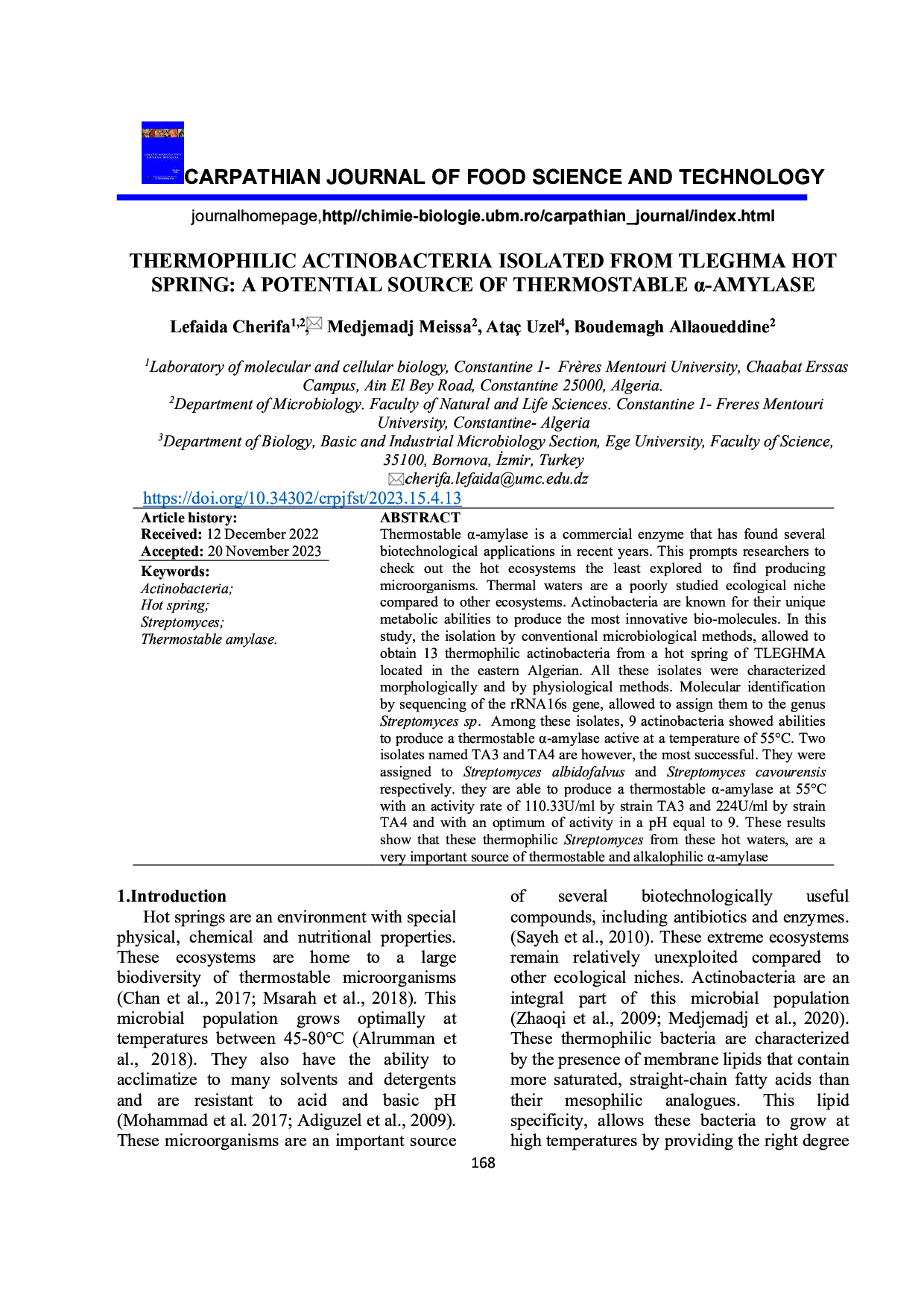 Thermophilic actinobacteria isolated from tleghma hot spring: a potential source of thermostable α-amylase
