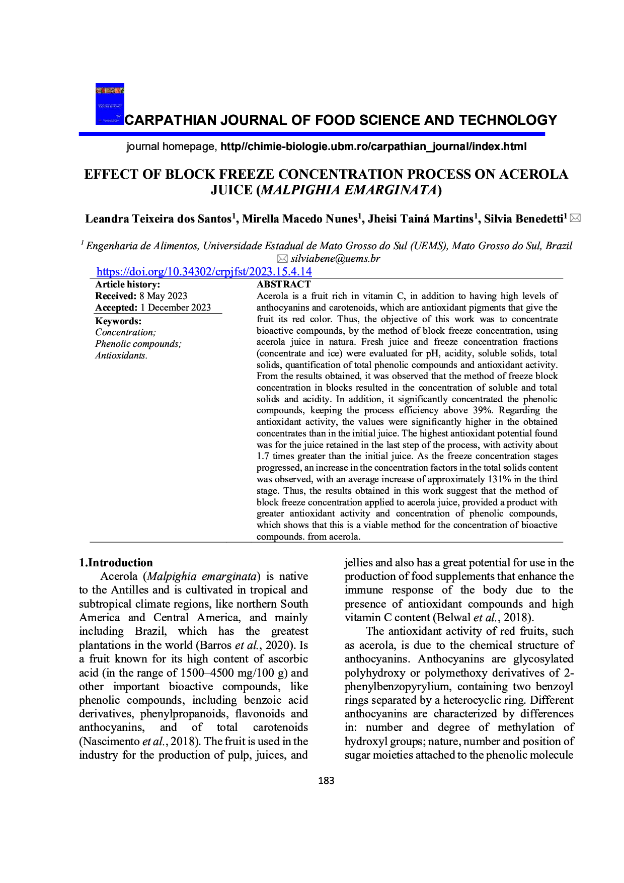 Effect of block freeze concentration process on acerola juice